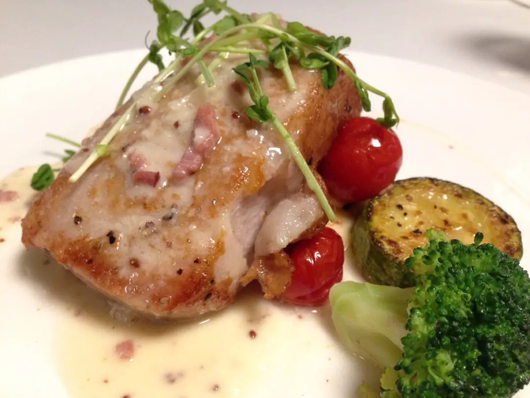香煎豬扒伴薯蓉煙肉汁