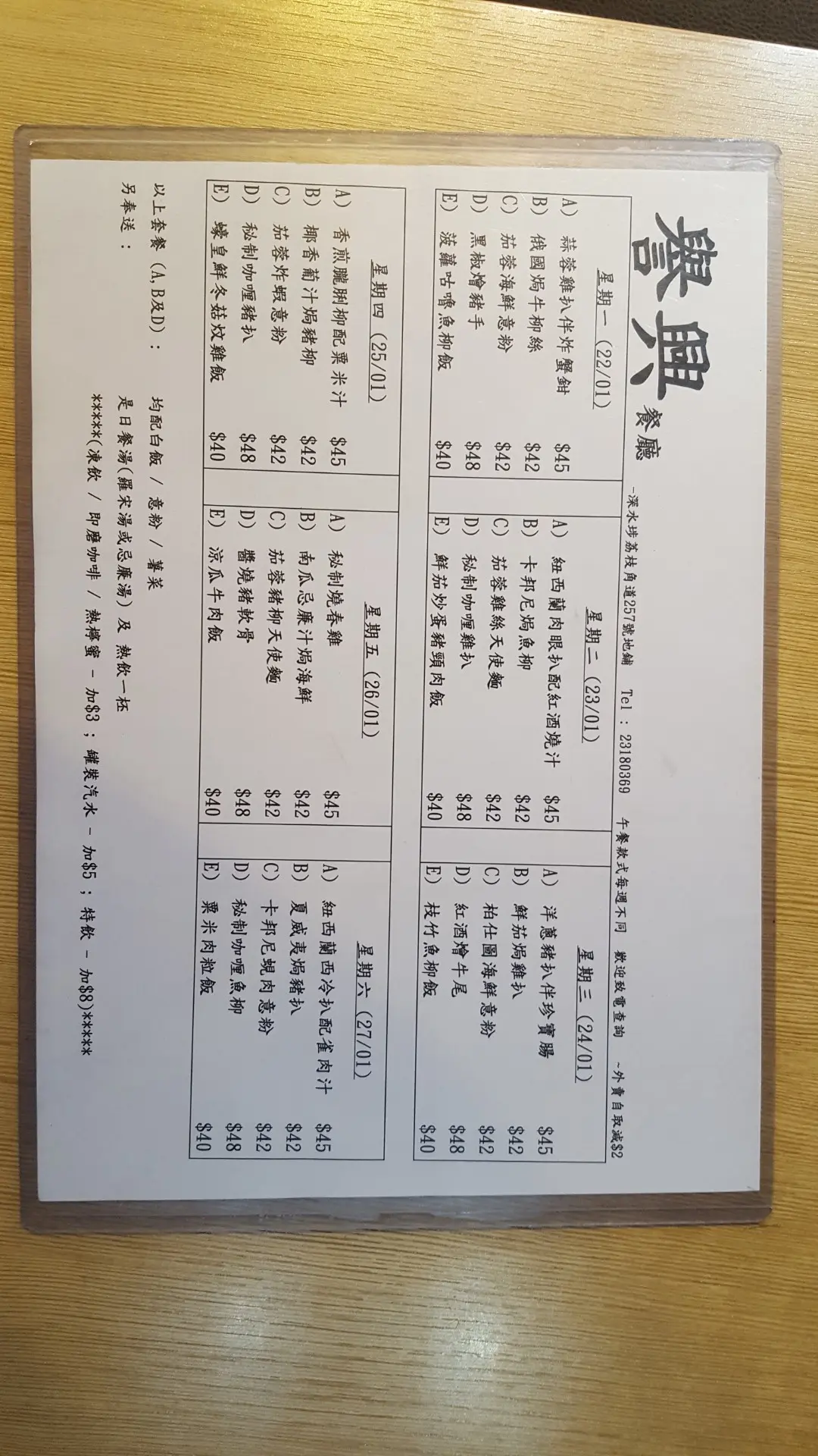 餐牌