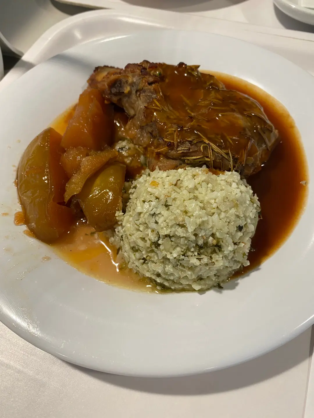 蜜糖芥末烤豬鞍配椰菜花飯