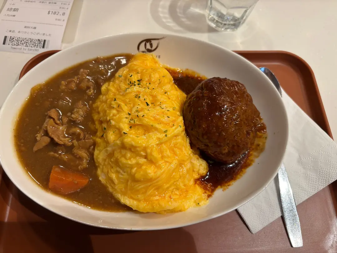 咖哩漢堡肉拼咖哩豬肉蛋包飯