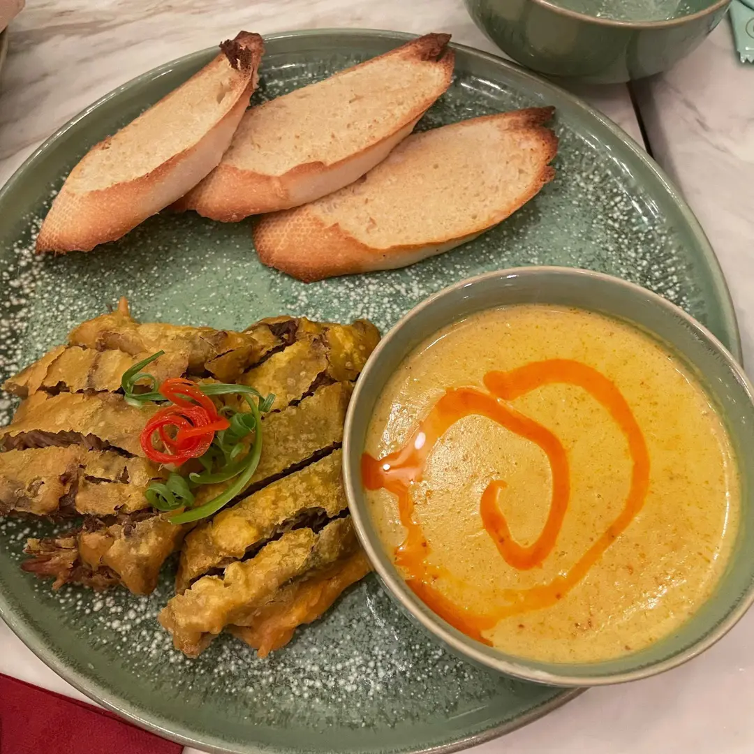 脆皮牛腩黃咖喱配法包