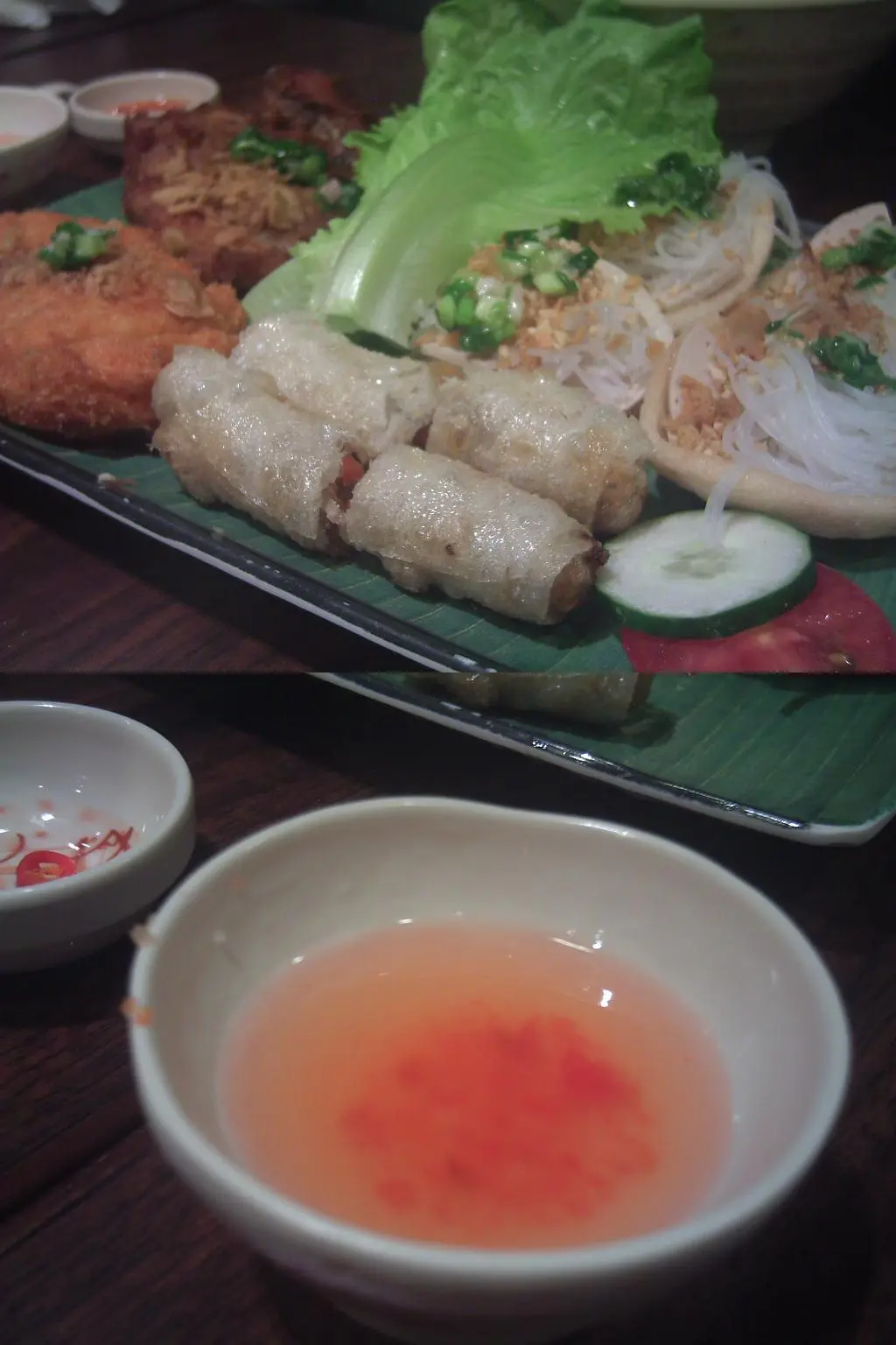 越式小食拼盤總共有四款食物,伴上的是酸甜版的魚露