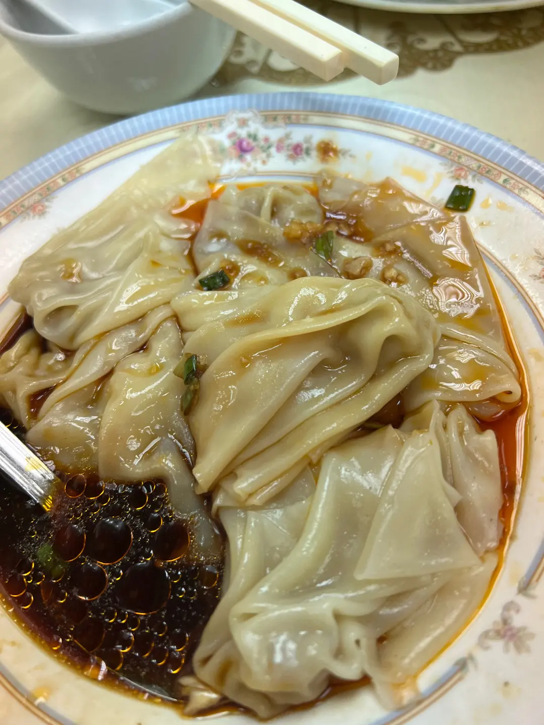 跟食指指節一樣大的紅油抄手 也太誇張