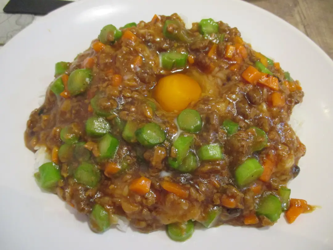 窩蛋免治素牛肉飯