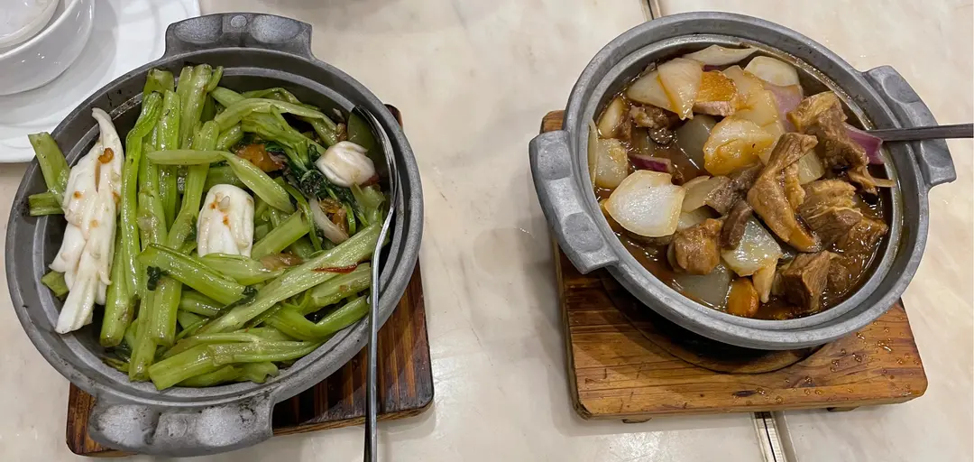啫啫通菜魷魚煲&柱侯蘿蔔牛腩煲