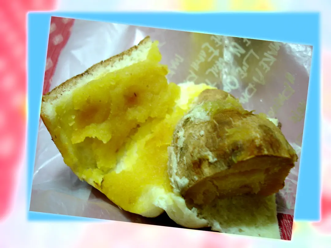 連皮的蕃薯外再有蕃薯茸包圍
