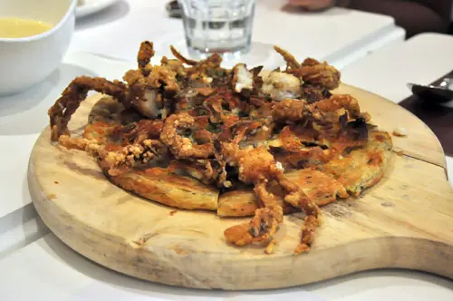 酥炸軟殼蟹蔥油薄餅