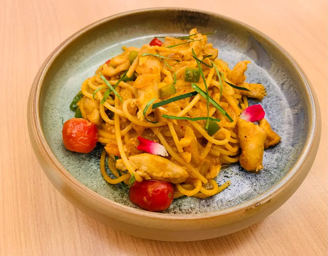 好鍾意,有驚喜,未試過咁樣配搭嘅fusion!! 鷄肉好嫩滑,個紅咖喱好惹味好辣
