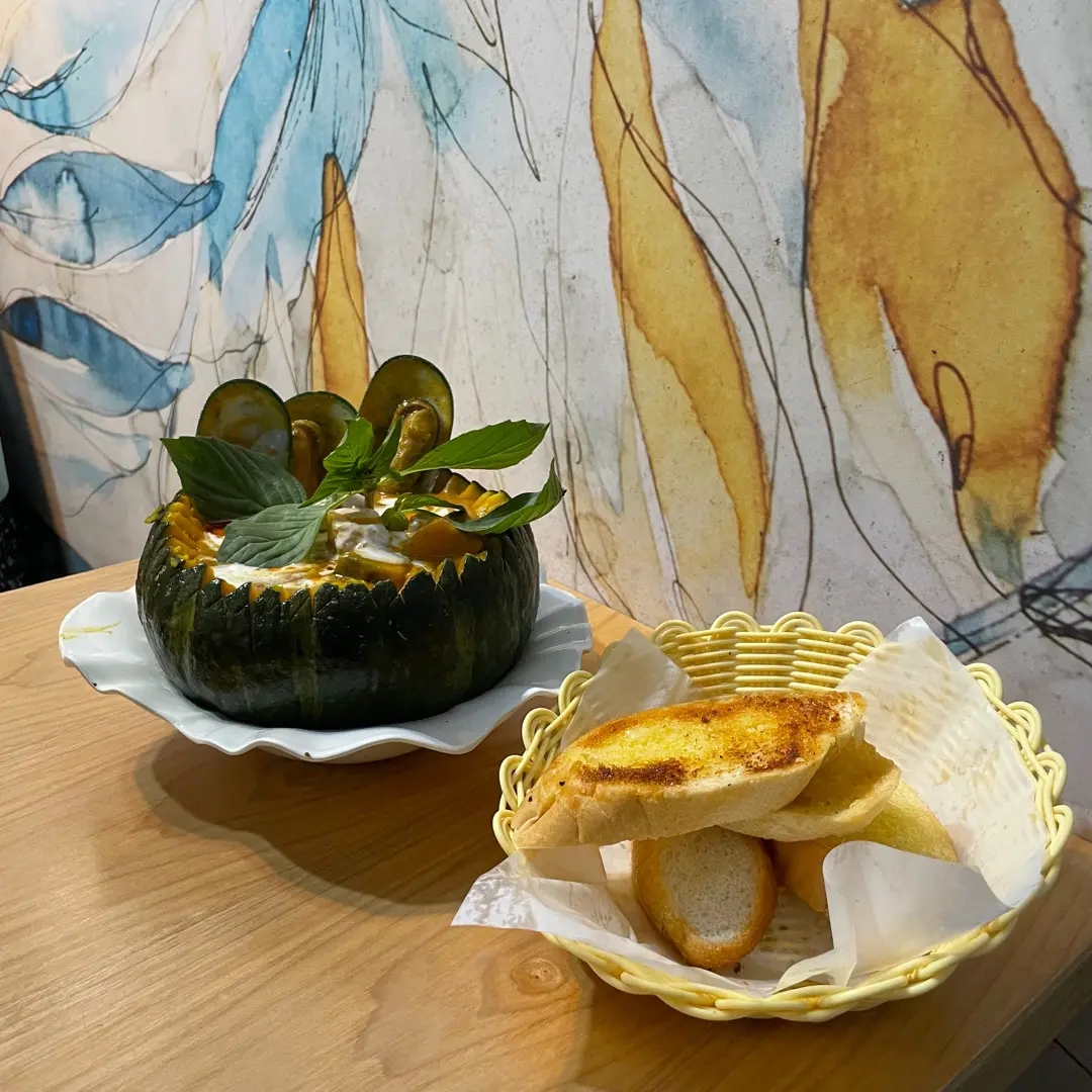 南瓜咖哩海鮮加配蒜蓉包