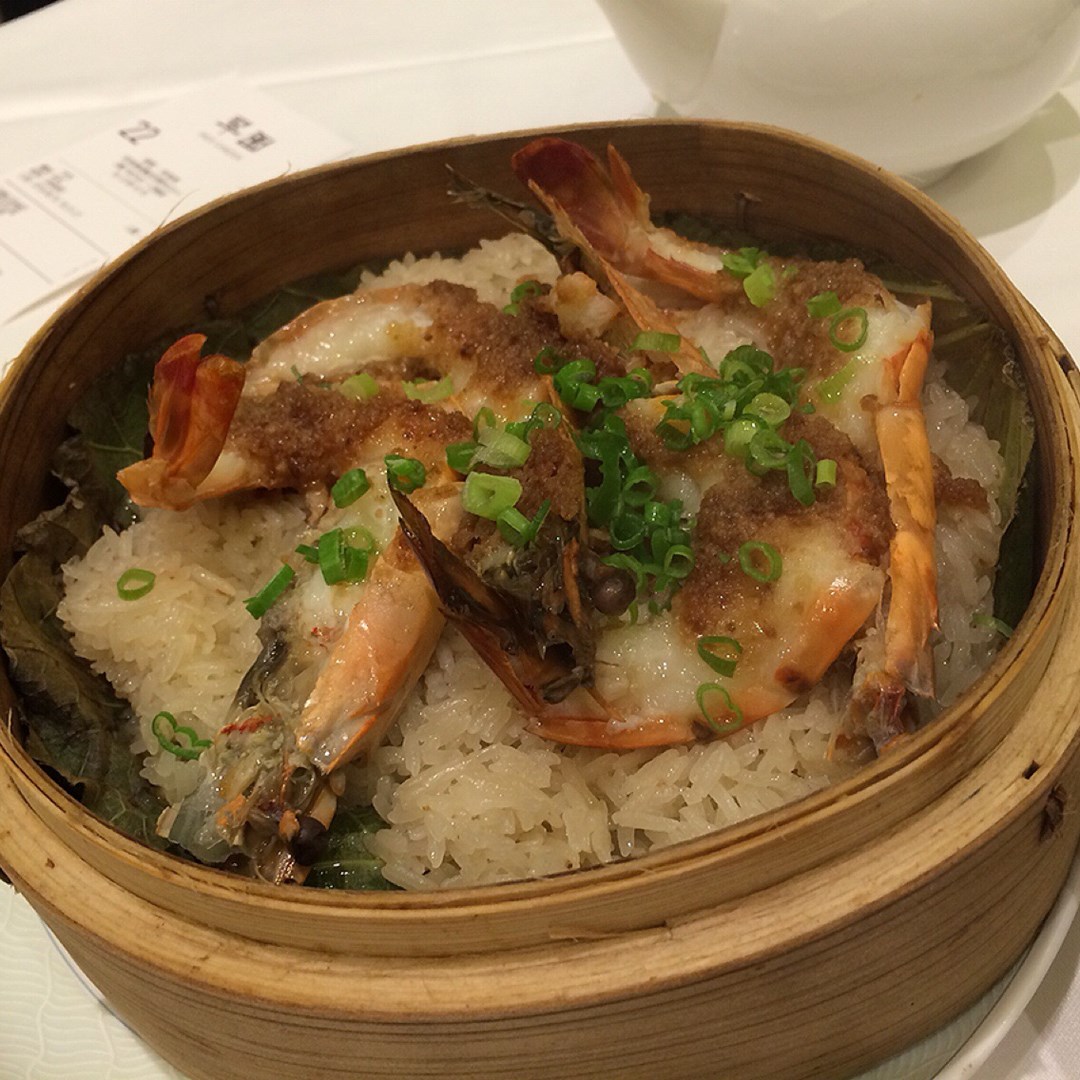 金蒜糯米蒸虎蝦 Steamed Halved Tiger Prawns and Glutinous Rice w Mashed Garlic