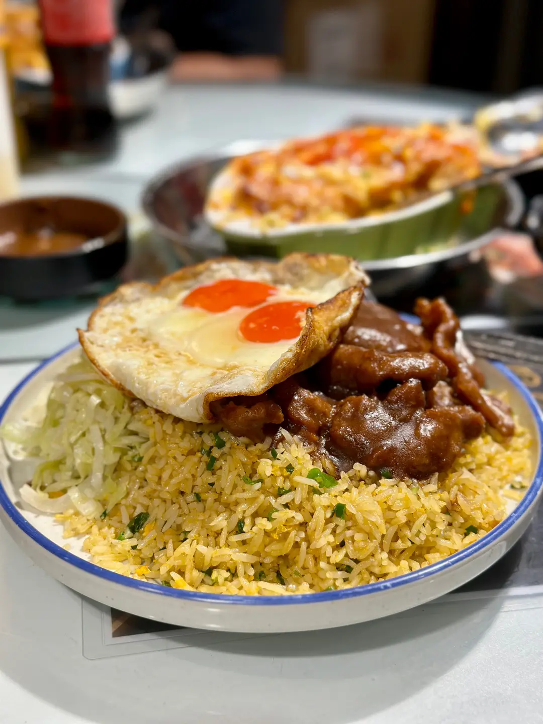沙嗲牛肉雙燶邊蘭王蛋飯