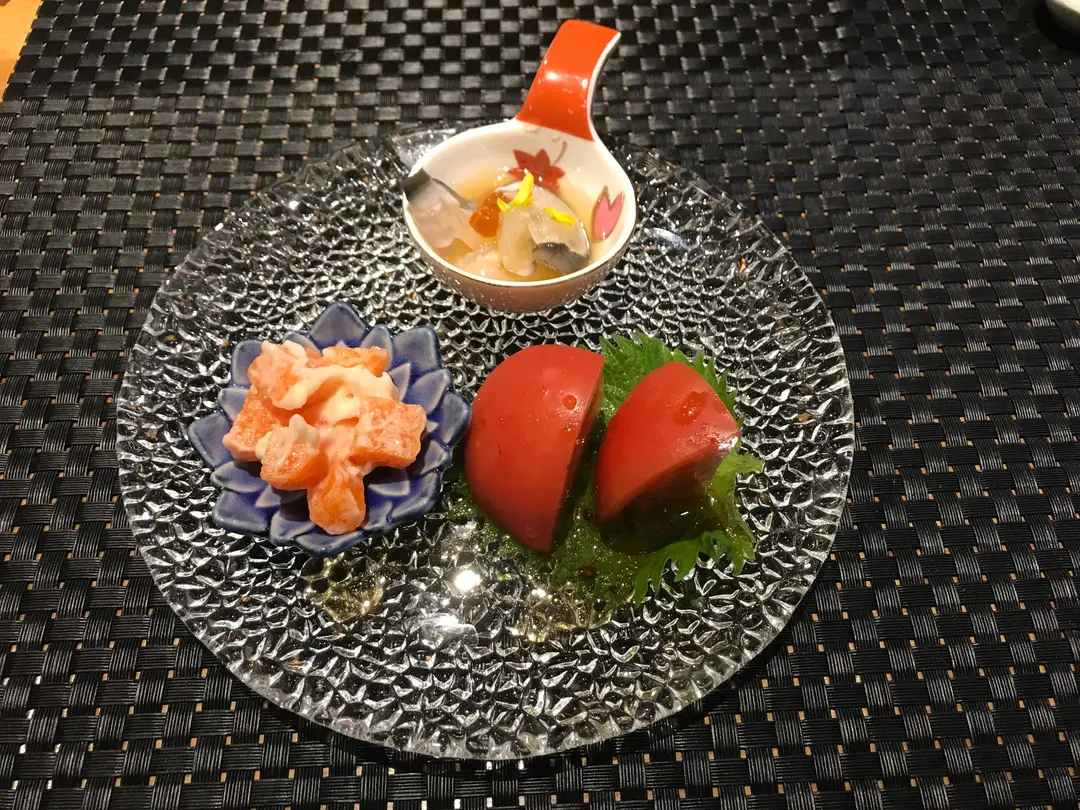 熊本番茄、三文魚冰頭漬及明太子沙律
