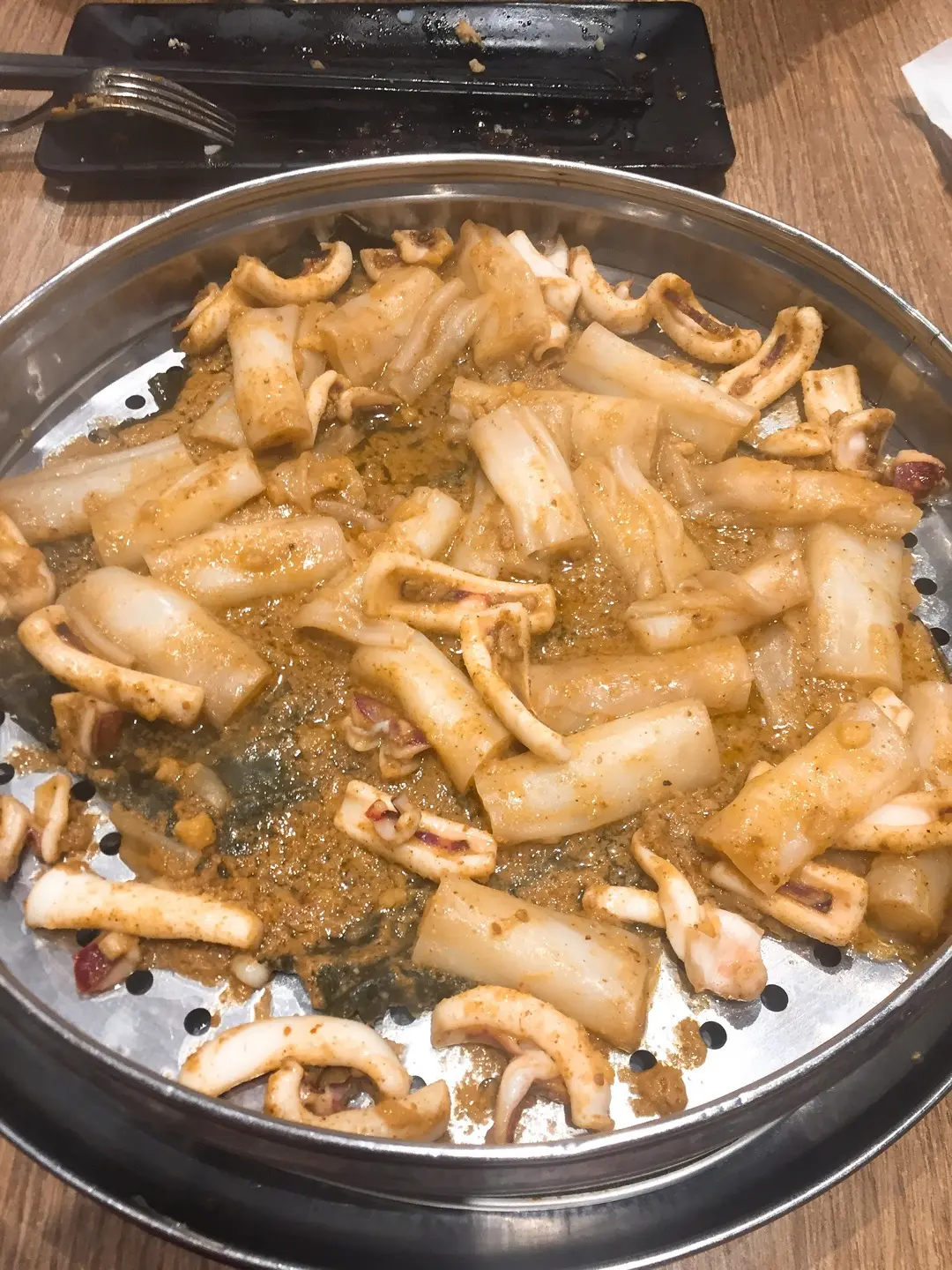 沙爹蒸鮮魷魚配腸粉底