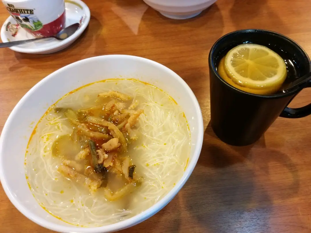 榨菜肉絲米、熱檸茶