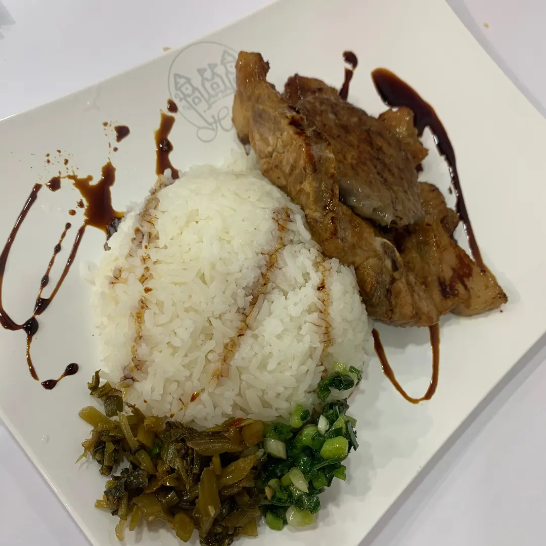香煎蓮藕餅配豬扒飯