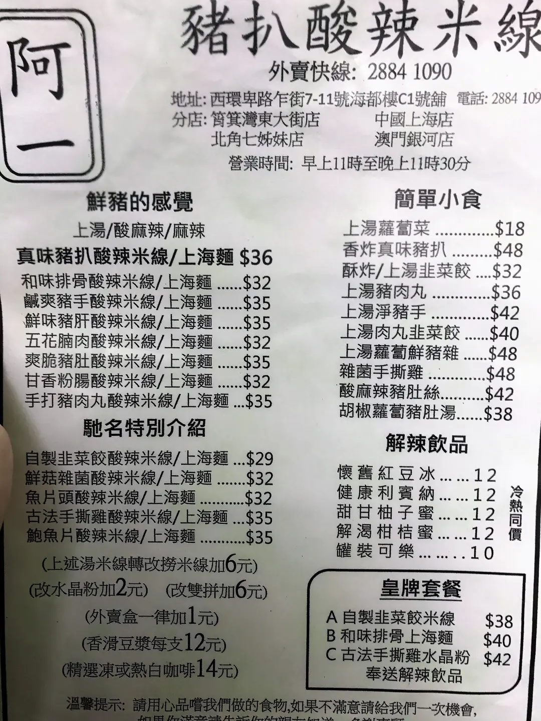 阿一豬扒酸辣米綫