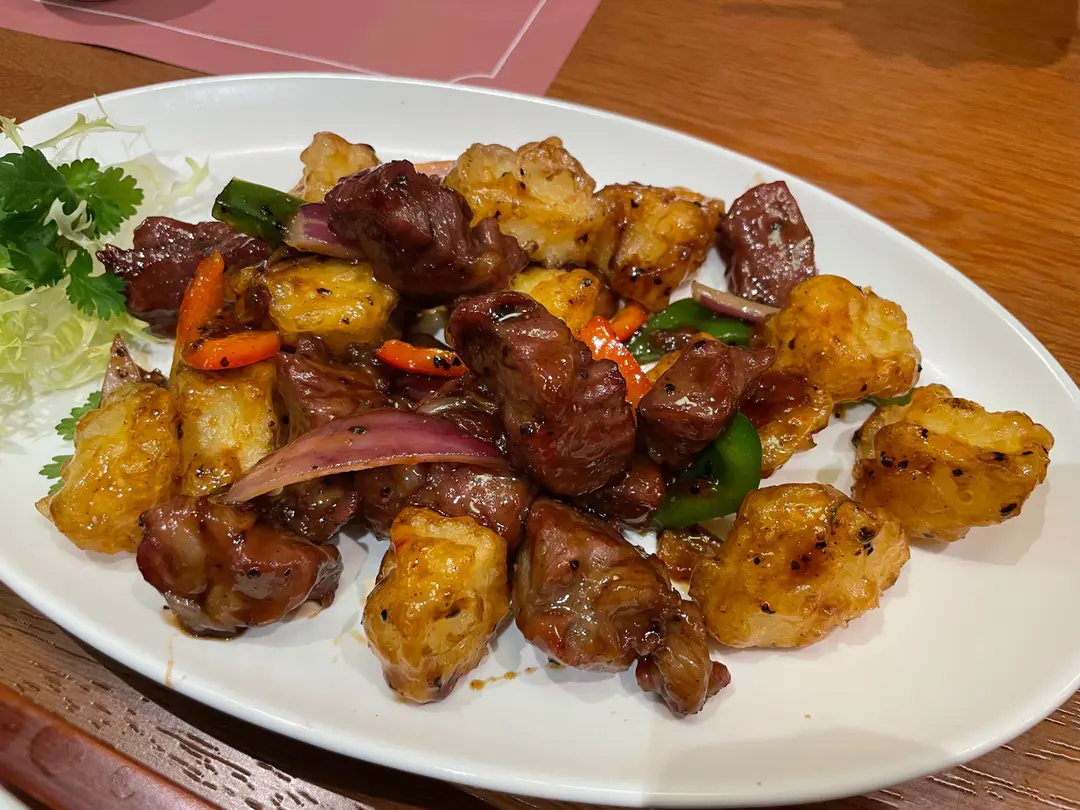 黑椒金薯炒牛柳粒