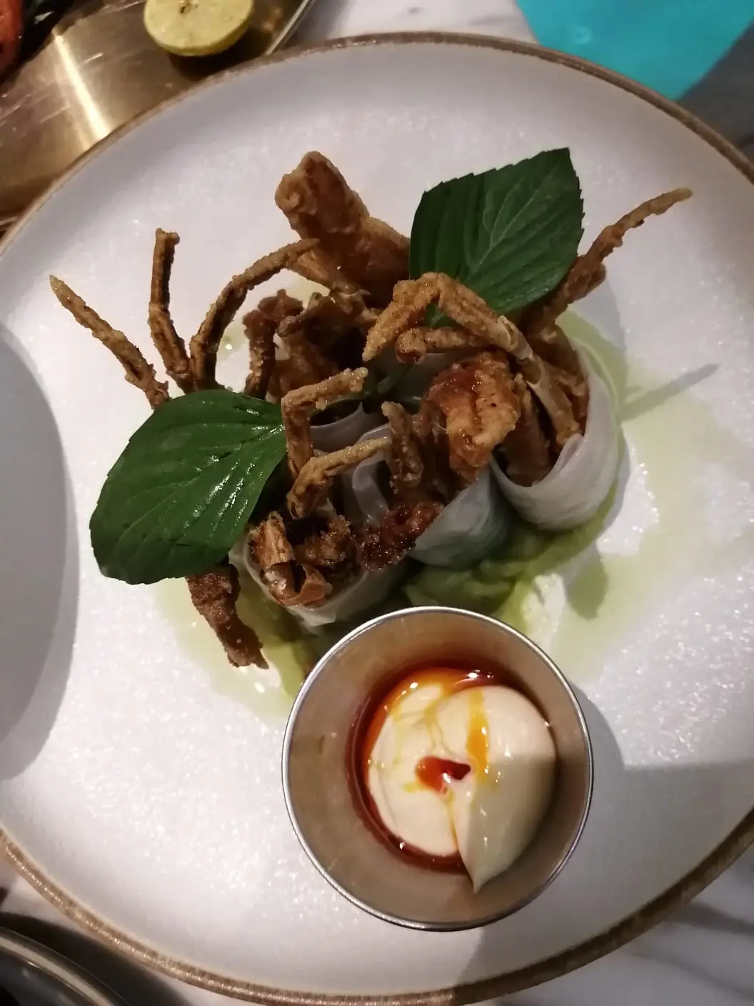 脆炸軟殼蟹米紙卷配牛油果醬