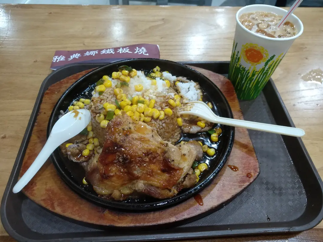 肥牛雞扒鐵板飯+凍奶茶