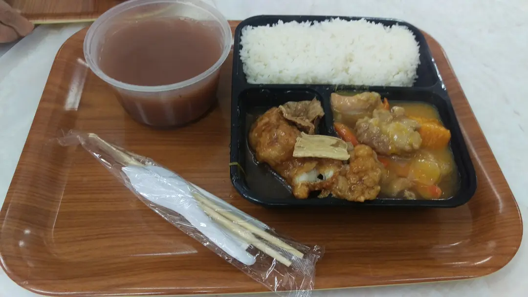 南瓜炆雞件肉及鮮炸咸水魚