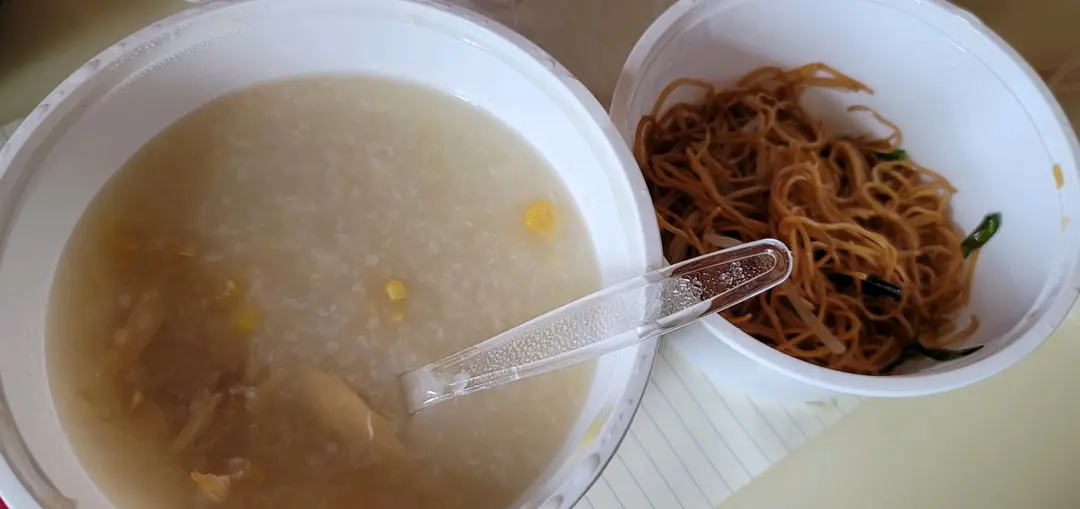 早餐。粟米雞絲配炒麵