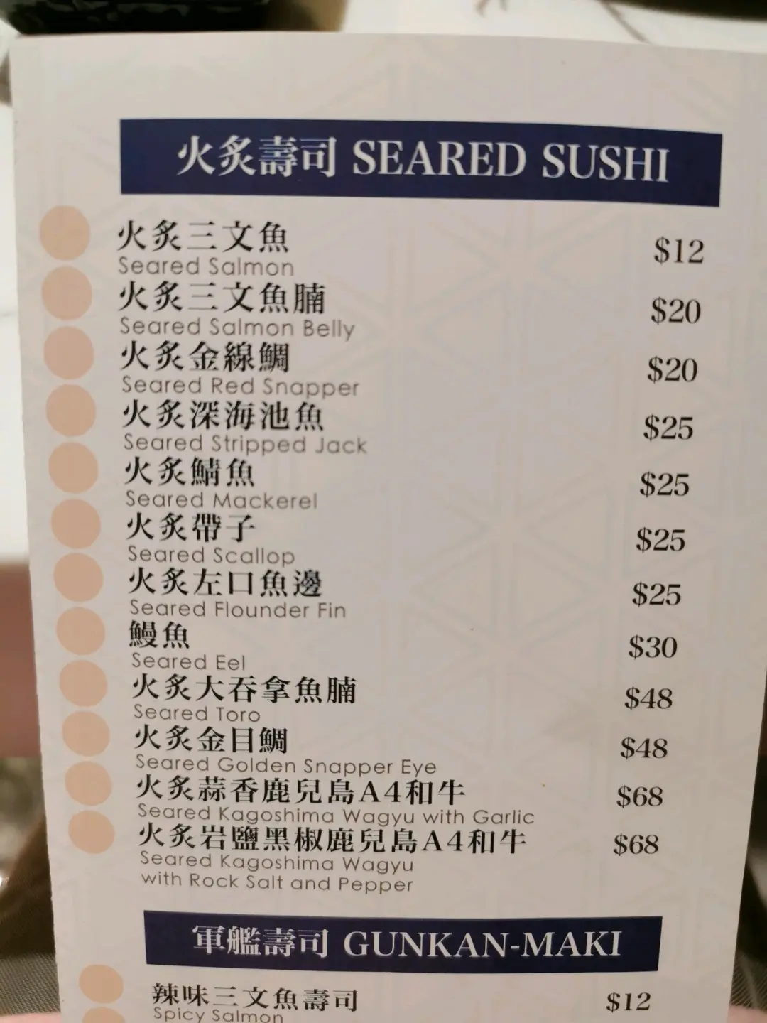 壽司餐牌