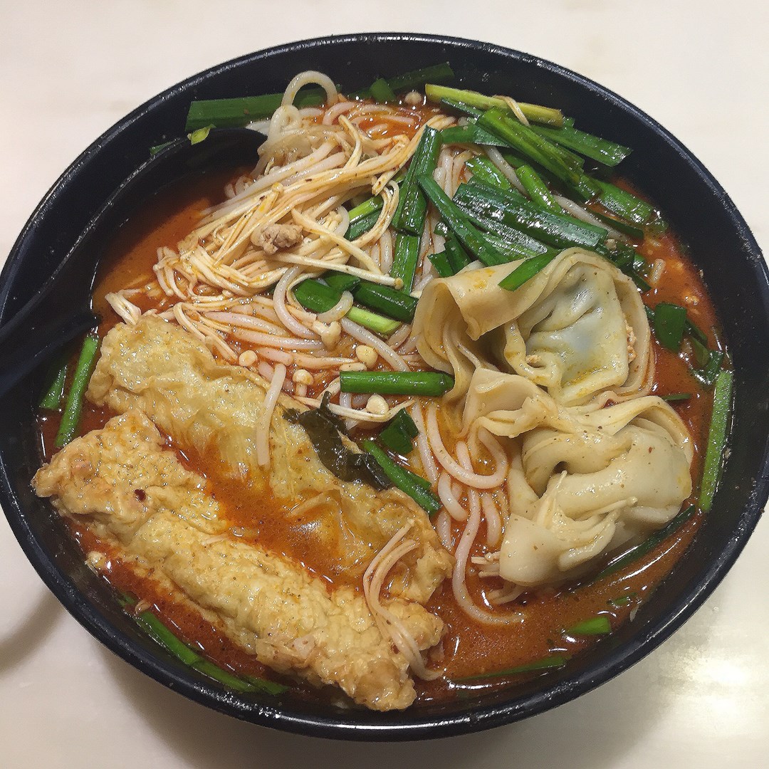 酸辣米線(菜肉雲吞、魚肉春卷、金菇、韭菜)