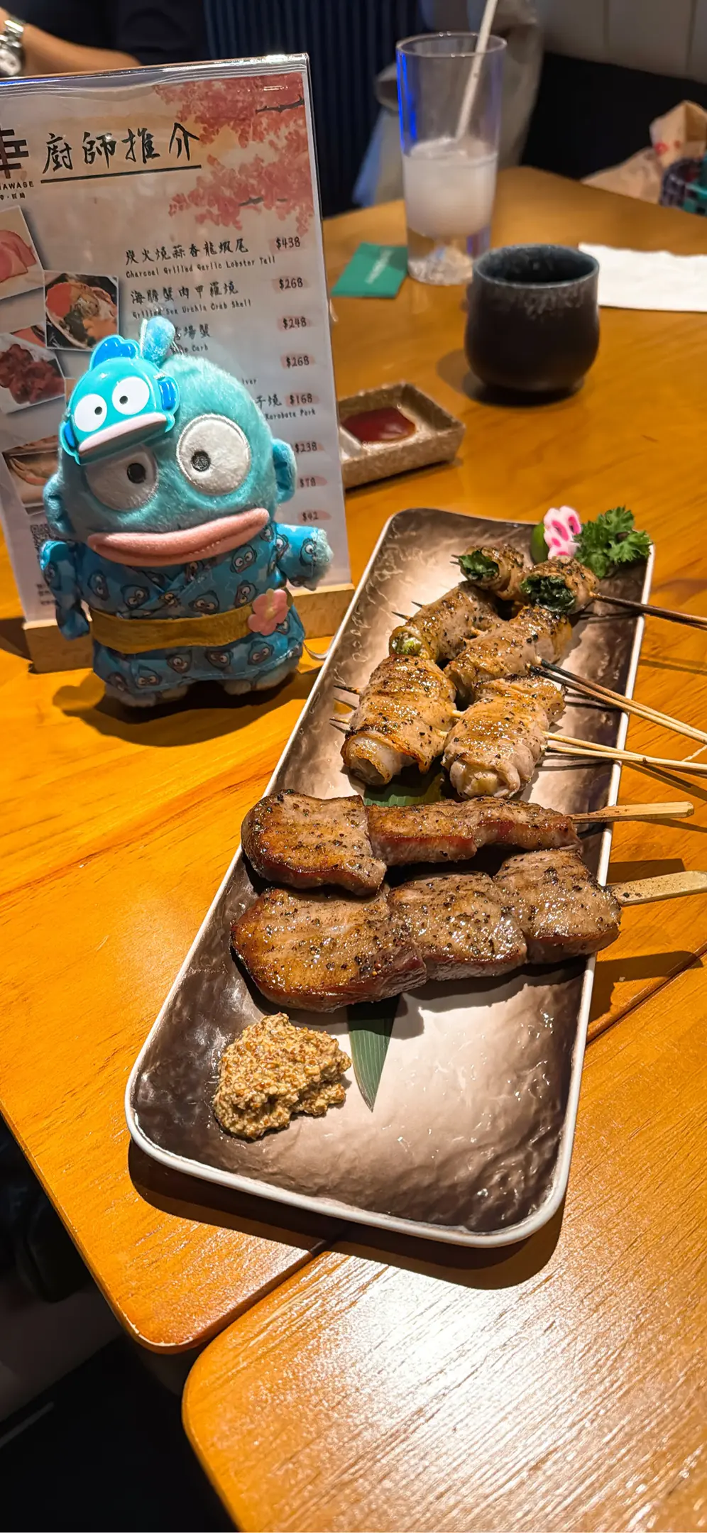 芫荽豚肉卷、青蔥豚肉卷、菠蘿豚肉卷、鹽燒牛舌串
