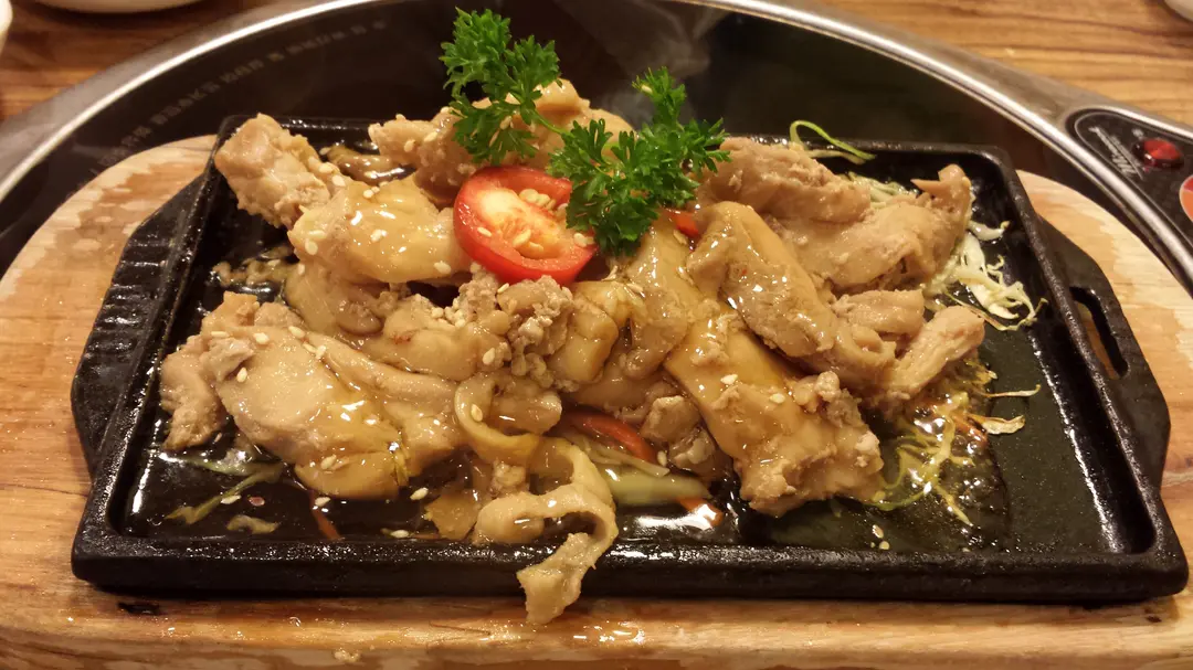 鐵板雞肉不夠香口,跟蒸煮的效果相近