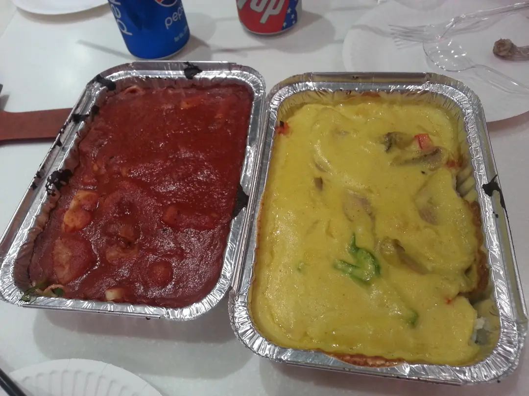 拿破崙海鮮意粉(左) 葡汁雞肉焗飯(右)