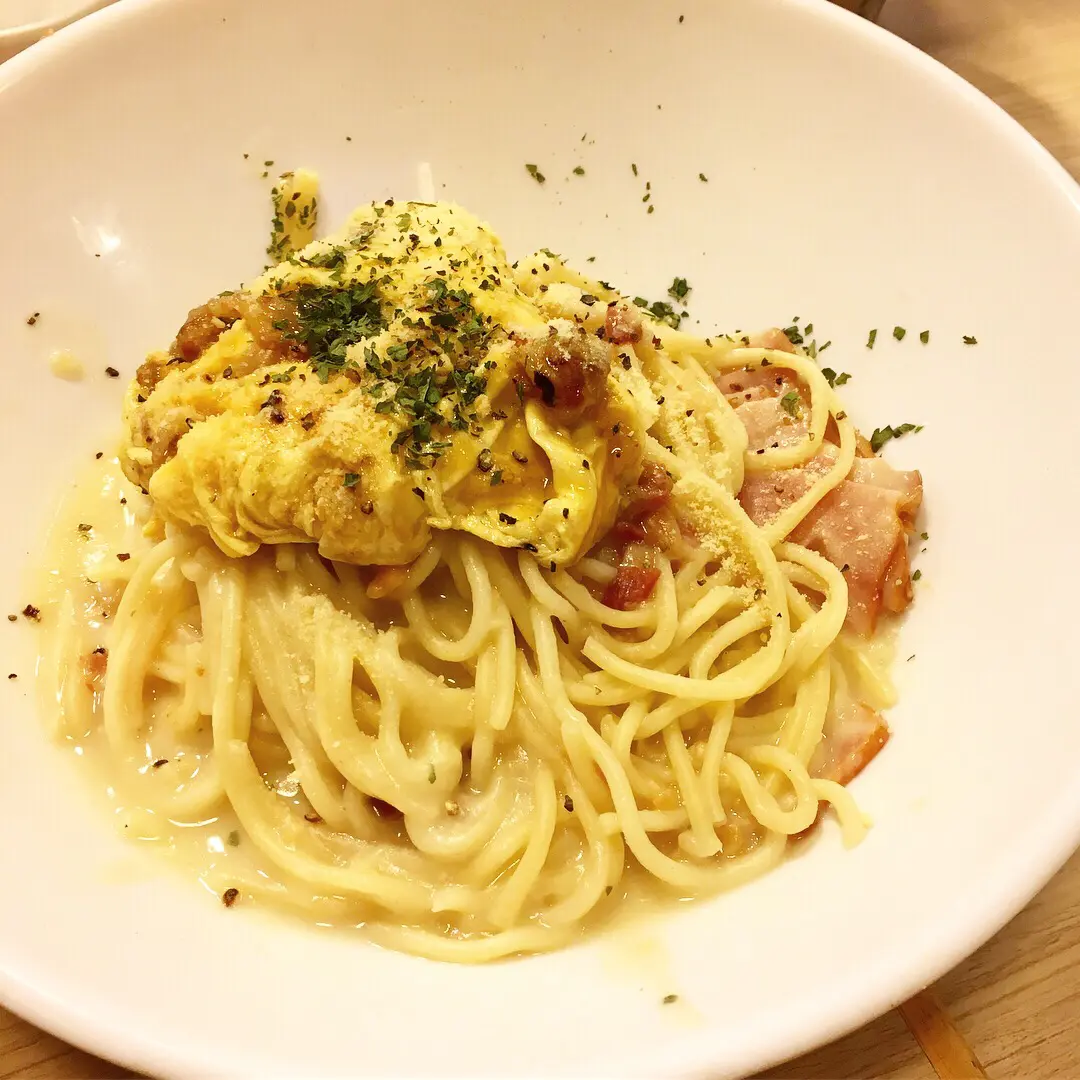 卡邦尼意粉配煙蔥炒蛋