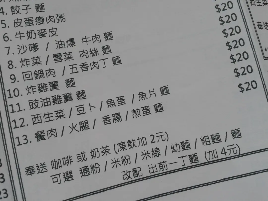 餐牌其中之一部分 (放大版)