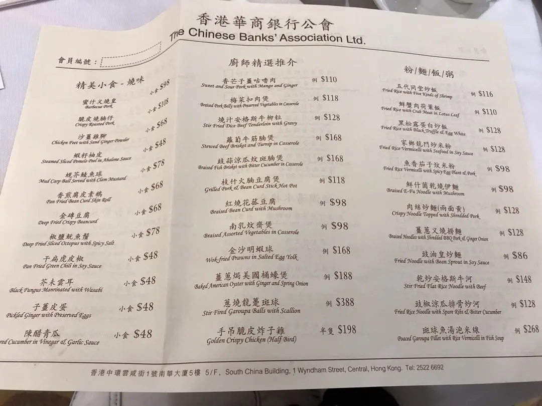 | 餐廳: | 香港華商銀行公會 |