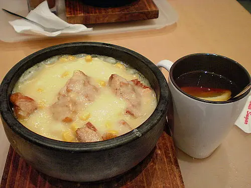 香草粟米雞粒熱石窩飯配熱檸茶