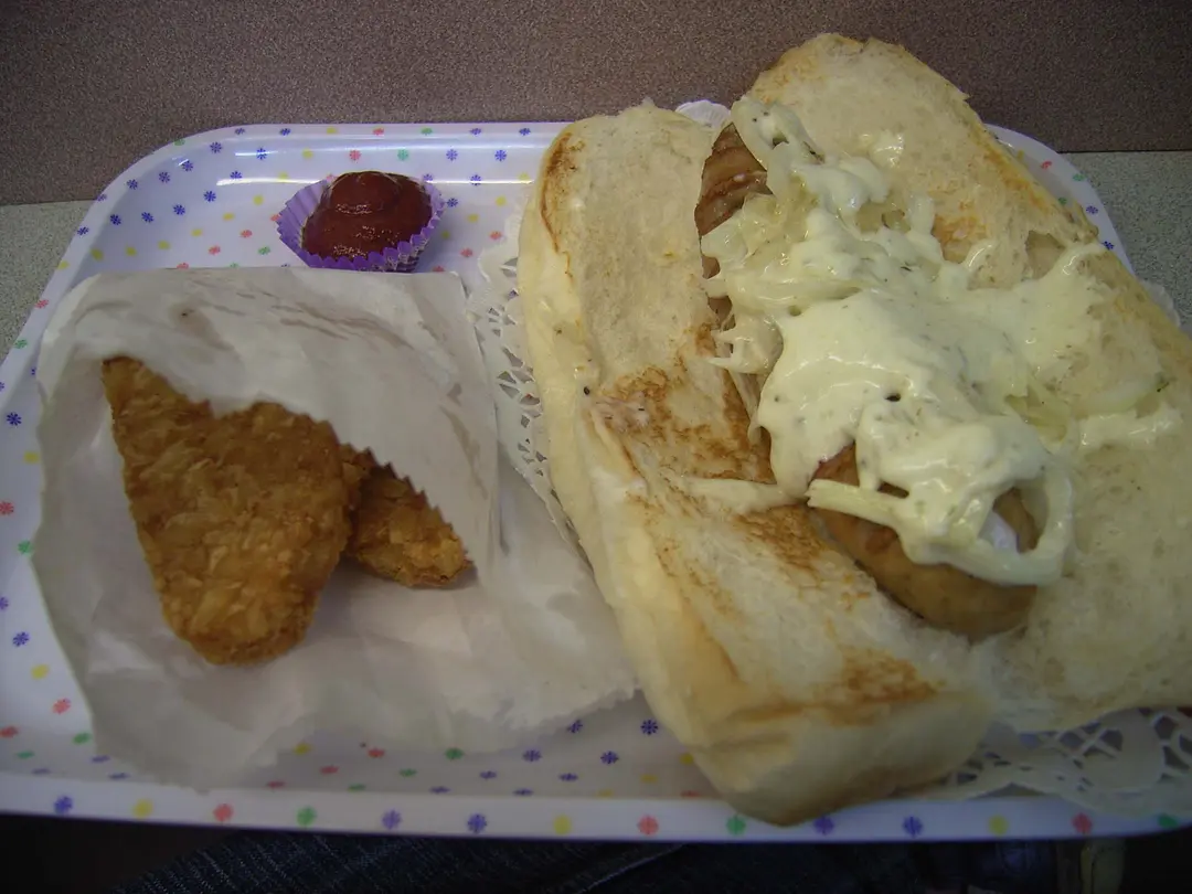 香蔥豬柳腸熱狗(酸瓜汁)and薯餅