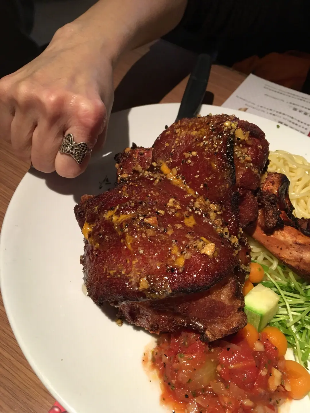 蜜汁豬手配意粉
