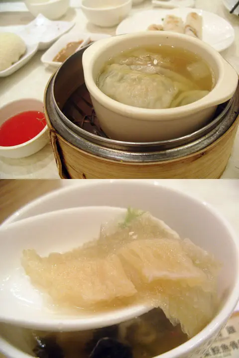魚翅灌湯餃(特點)而且有一排翅, 內餡有四隻蝦, 蕃茜及豬肉, 饀料足