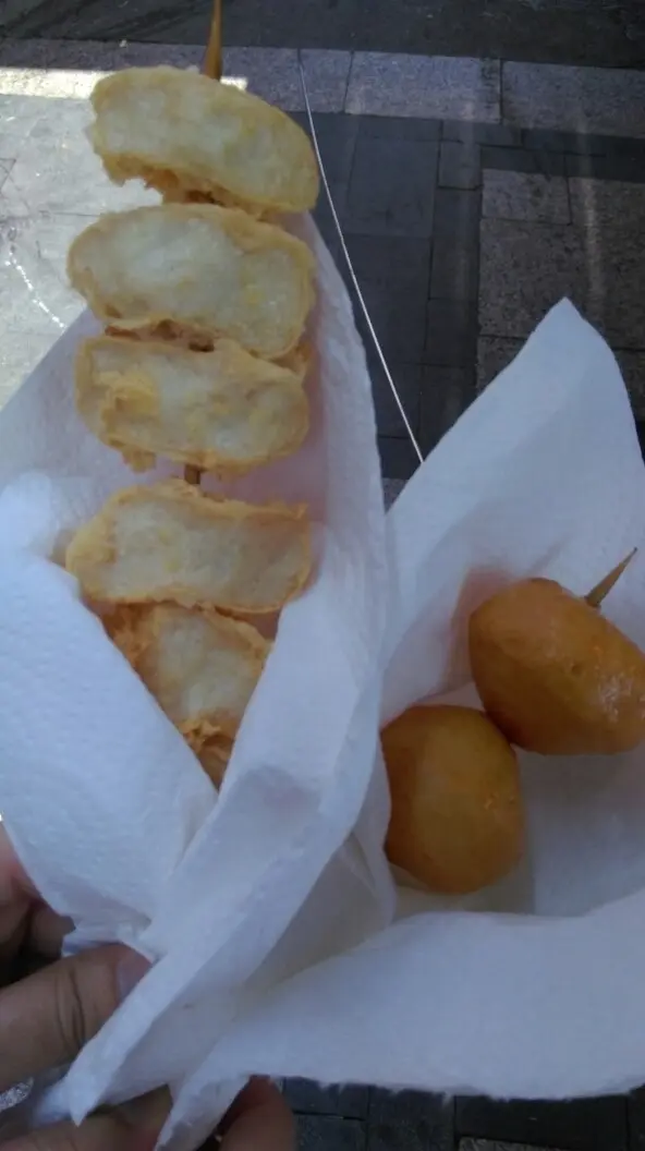 左炸豆卜釀魚肉,右炸魚蛋