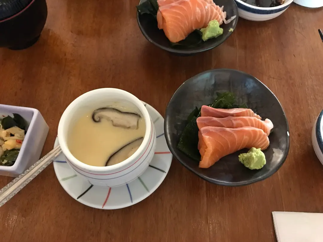 茶碗蒸及三文魚刺身