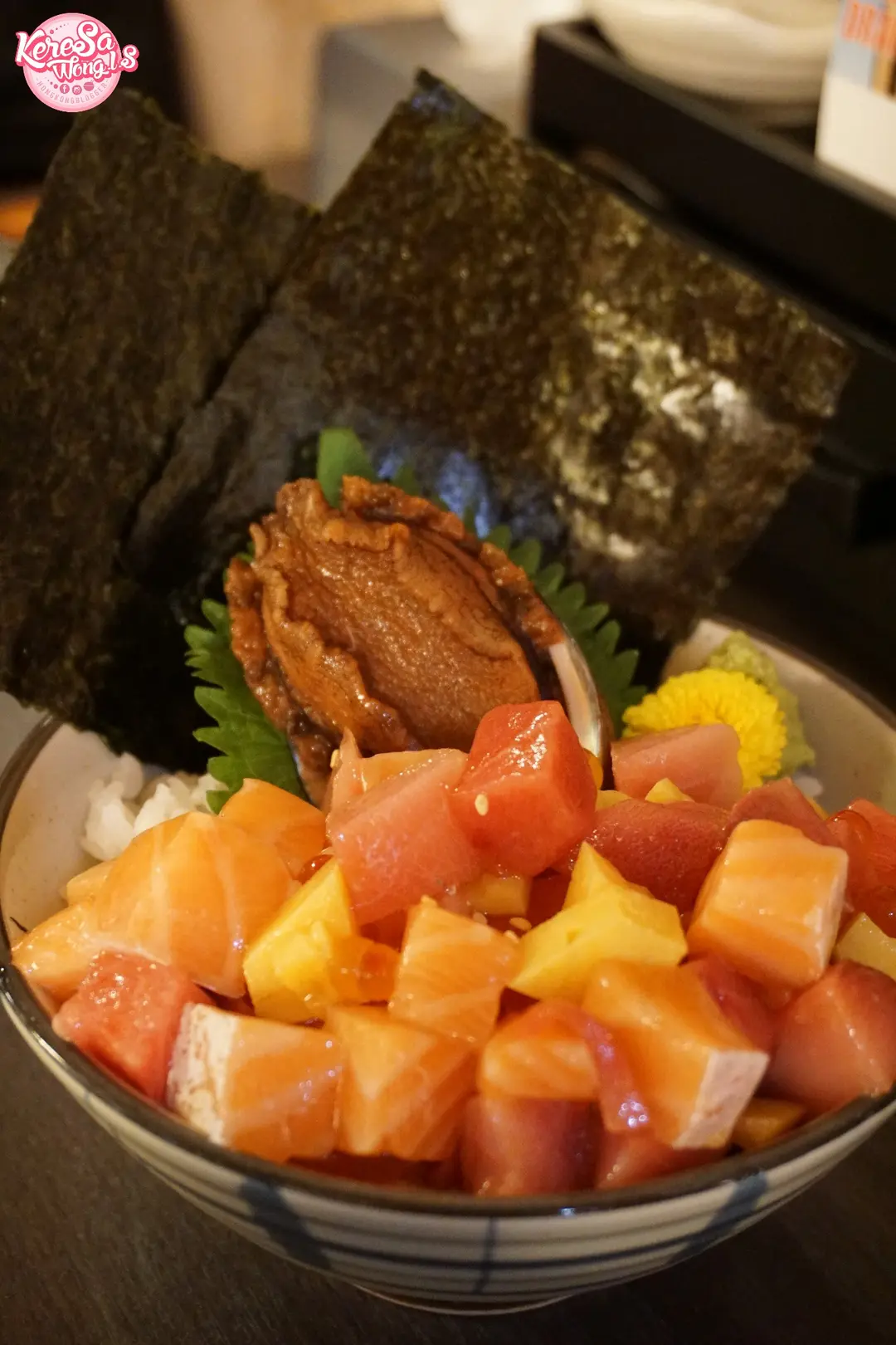 鮑魚角切魚生丼