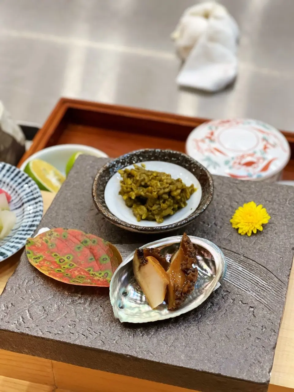 磯煮鮑魚配肝醬
