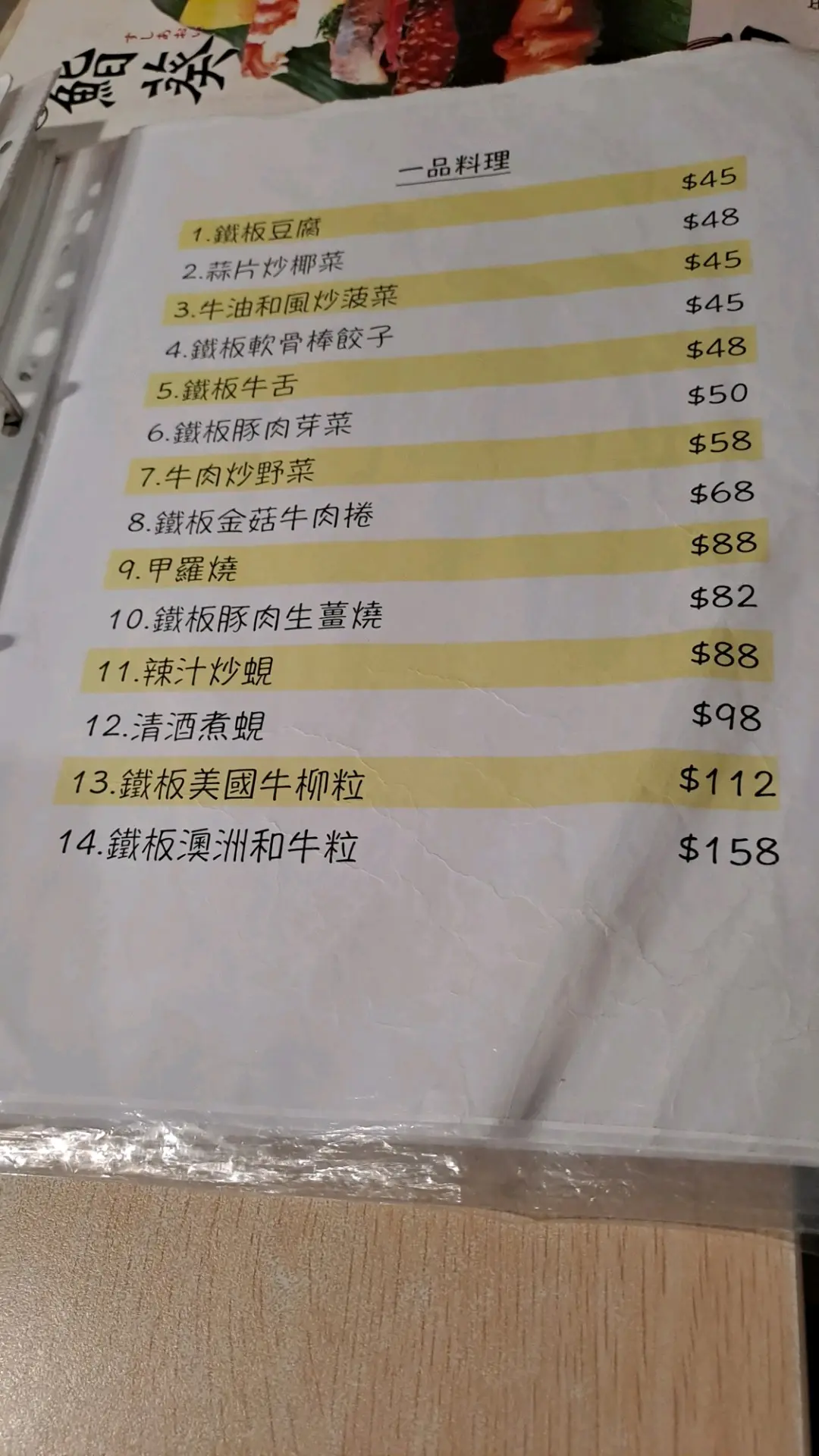 餐牌