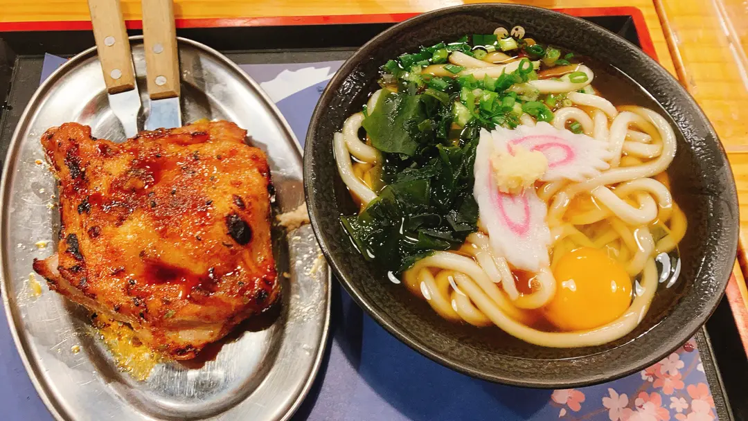 月見烏冬配骨付雞