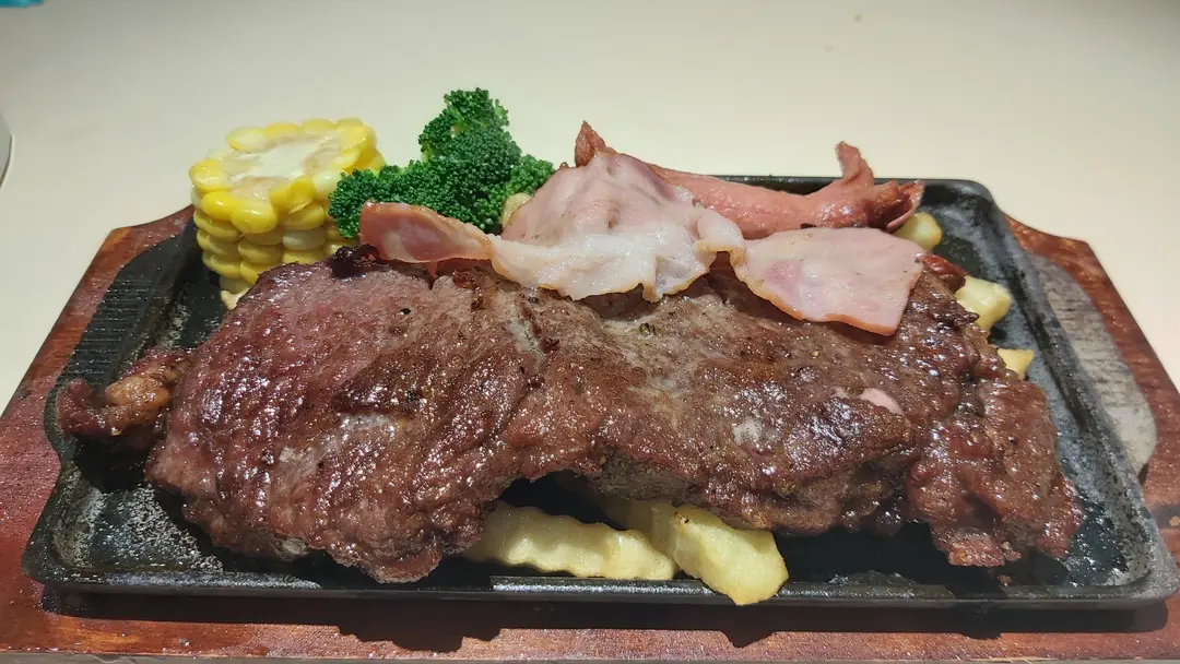 鐵板西冷牛扒跟薯菜黑椒汁