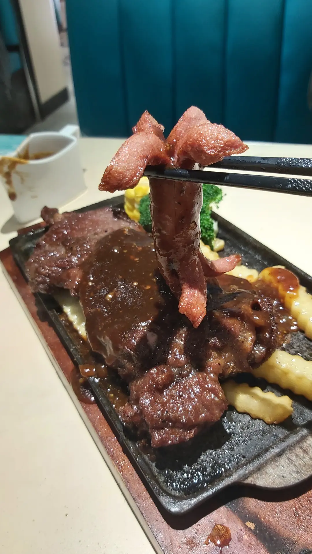 鐵板西冷牛扒跟薯菜黑椒汁