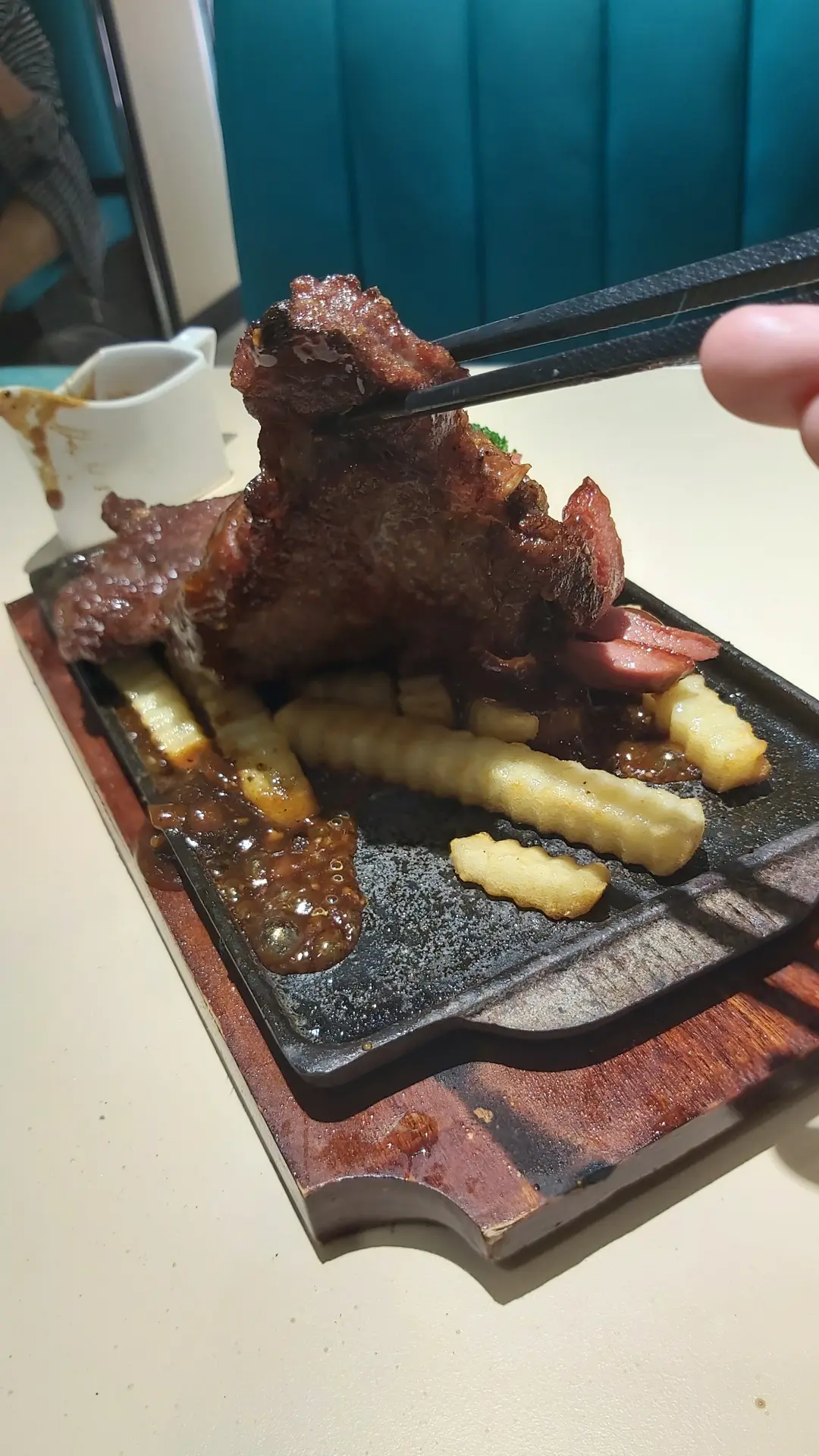 鐵板西冷牛扒跟薯菜黑椒汁