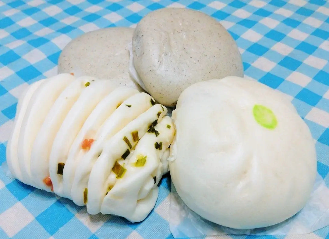 蔥花卷,韭菜豬肉包,黑芝麻包x2