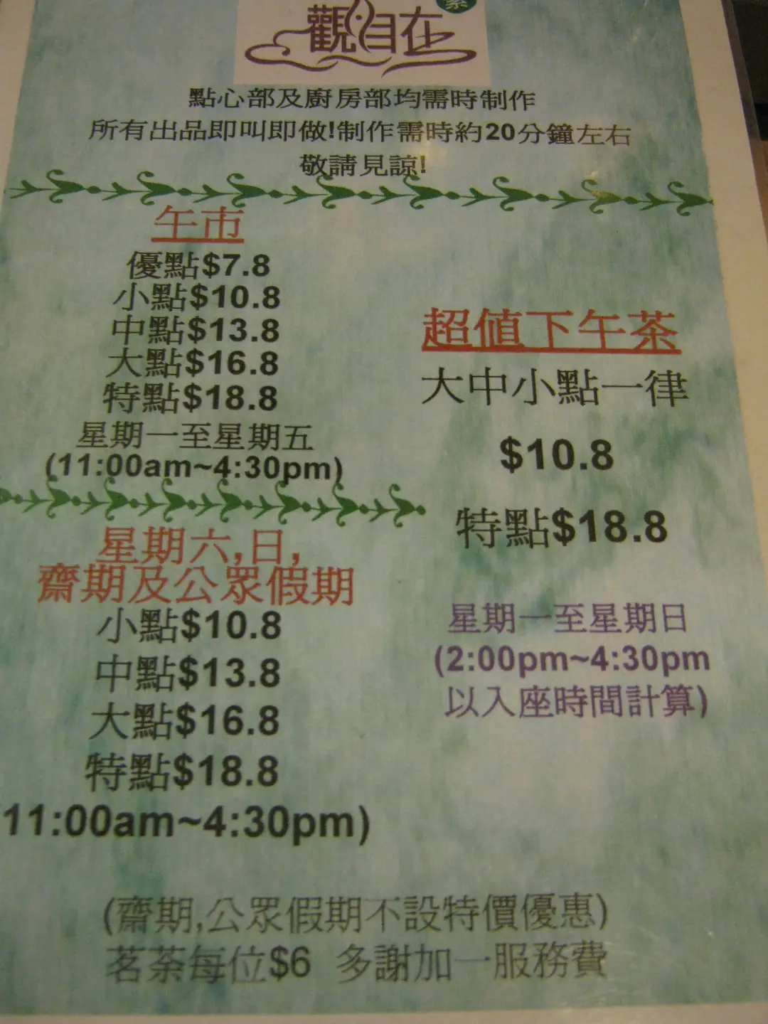 點心價錢