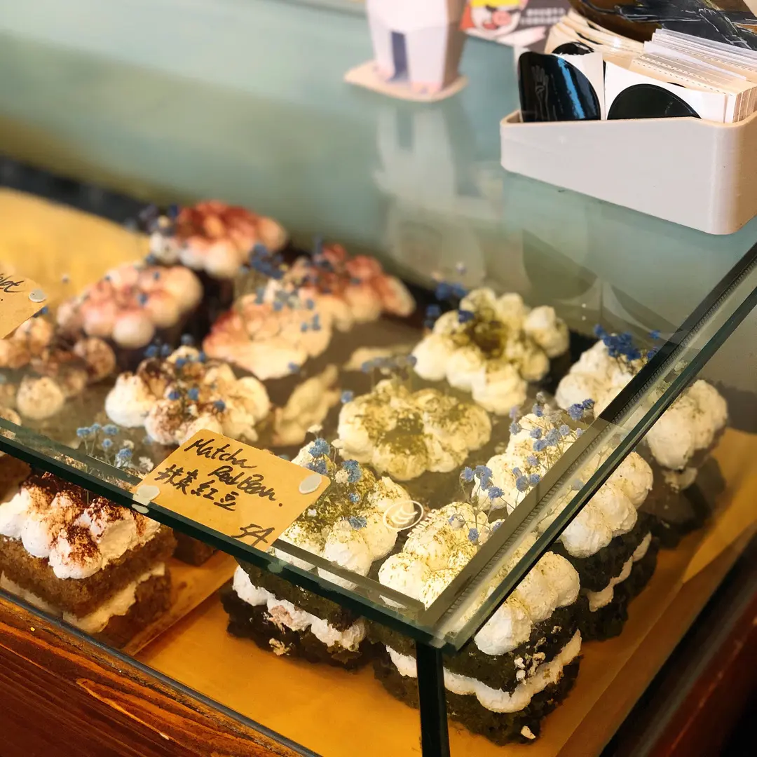 matcha red bean vegan cake