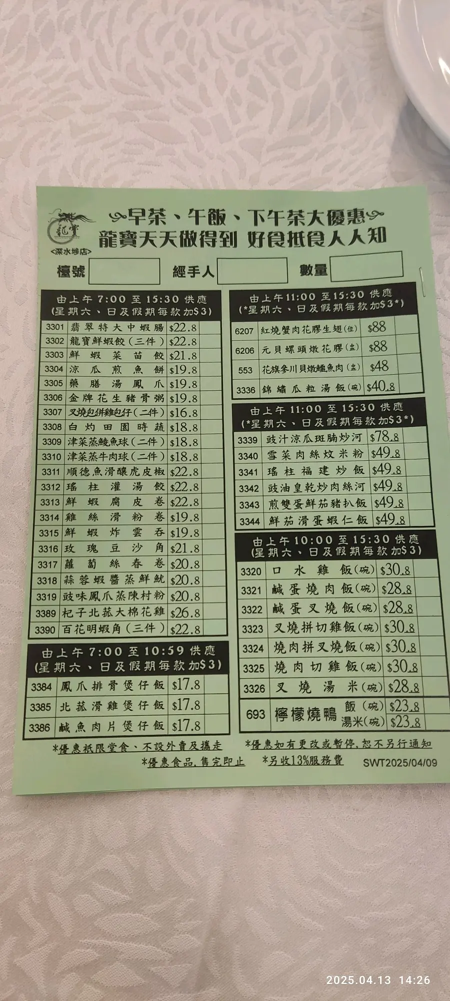 餐牌